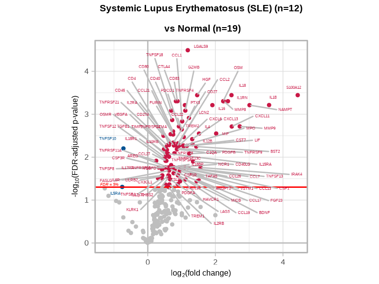 title = paste0("Systemic Lupus Erythematosus (SLE) (n=", n_sle, ") \n vs Normal (n=", n_normal, ")"))