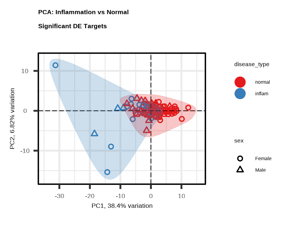 plot_title = "PCA: Inflammation vs Normal \nSignificant DE Targets",