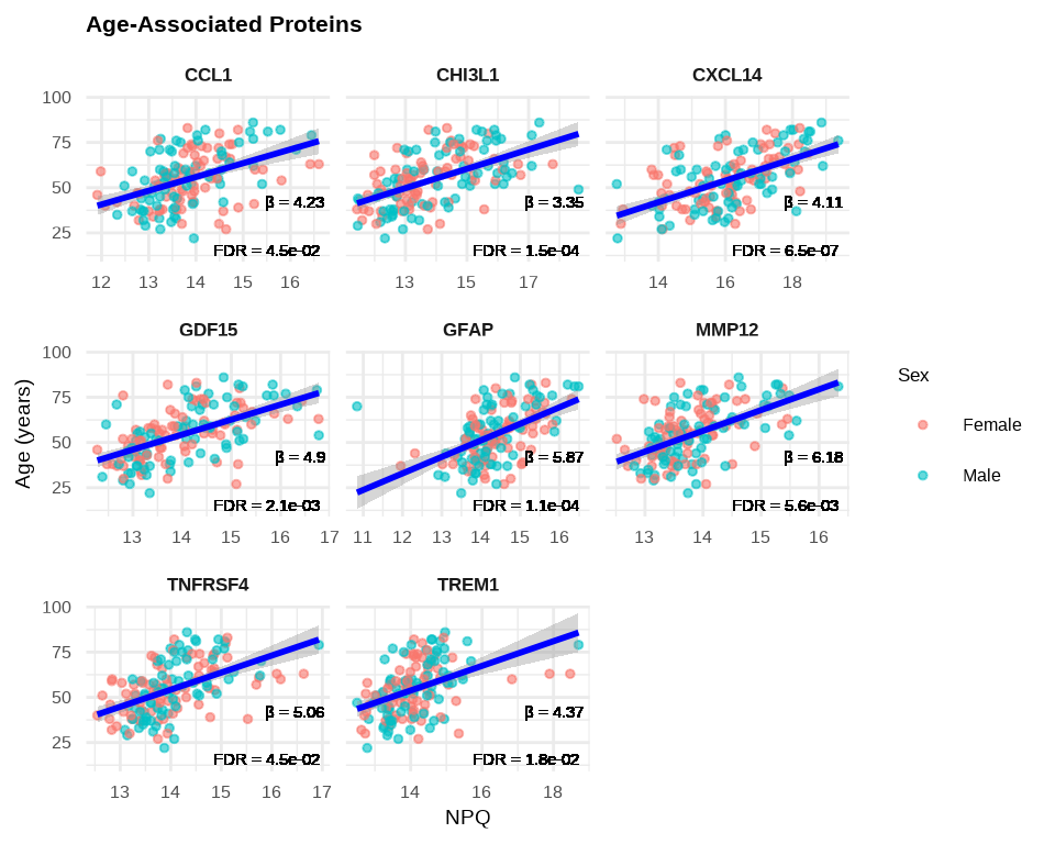 cat("Number of proteins significantly increase with age:", nrow(age_increase), "\n\n")#> Number of proteins significantly increase with age: 8