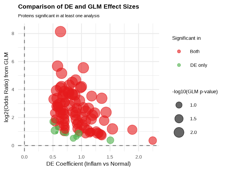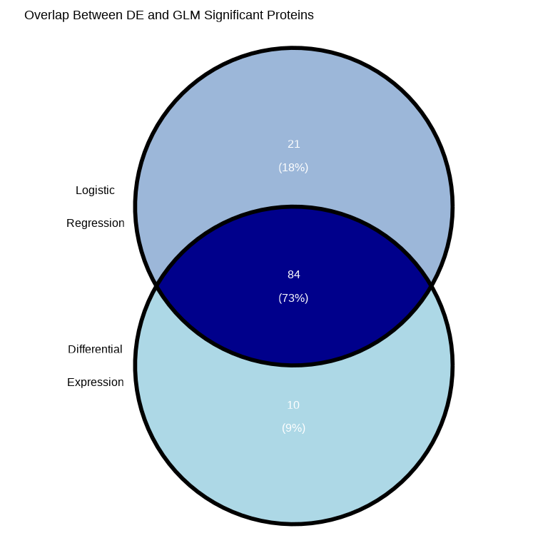 cat("Proteins significant in both DE and GLM:",