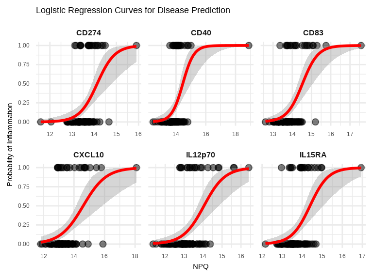 ## Logistic curve visualization for top 6 proteins